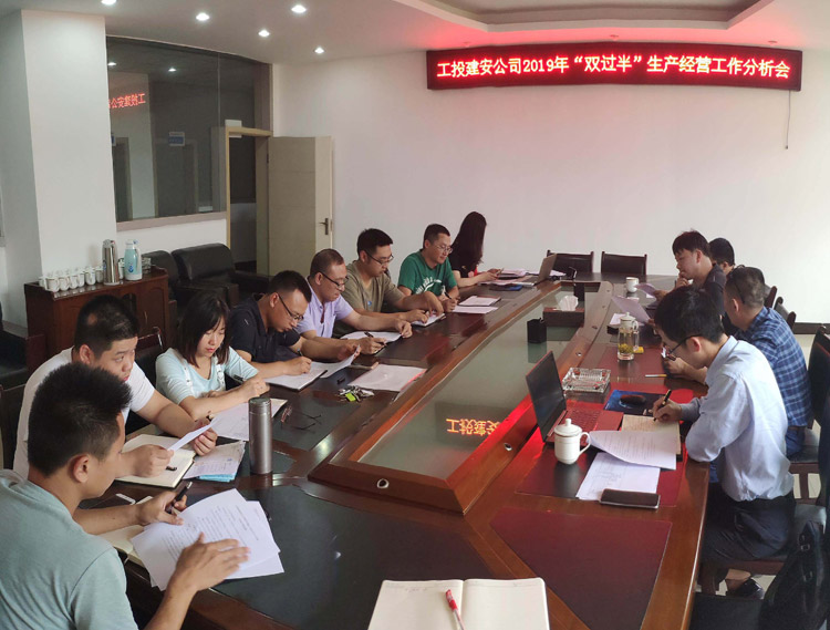 6月24日下午,工投建安公司董事長石清華主持召開2019年“雙過半”生產(chǎn)經(jīng)營工作分析會,簡要分析了當(dāng)前完成目標(biāo)情況和存在的問題。要求對主要管控項目形成統(tǒng)一的管控制度,強化風(fēng)控能力。并對下半年的工作進行部署,提出要主動作為,主動管理,加快進度,全力以赴,做到公司承建項目各關(guān)鍵節(jié)點在預(yù)計時間內(nèi)完成,確保公司全年經(jīng)營目標(biāo)的完成。